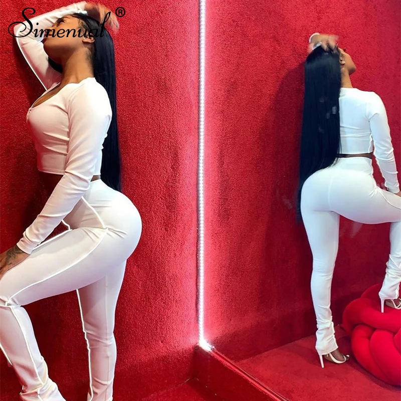 Simenual Reflective Stripe Workout Matching Sets Fashion Sporty Casual Women 2 Piece Outfit Long Sleeve Zipper Top And Pants Set look the best product that related to